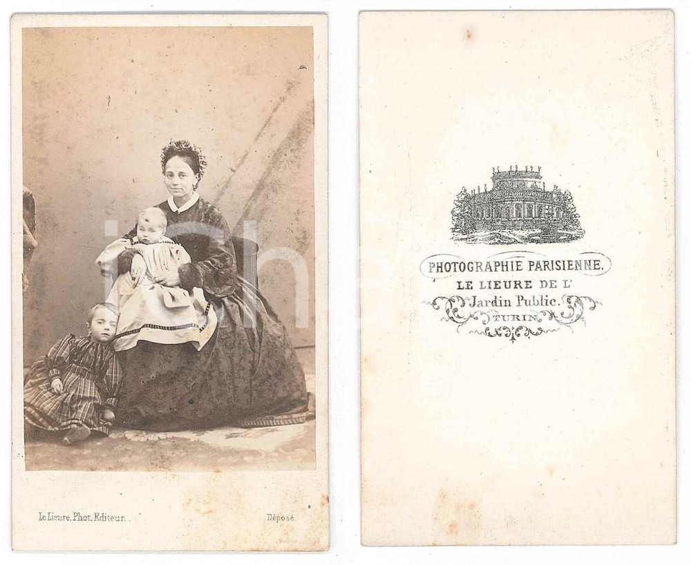 1875 ca TORINO Donna con i due figli bambini - Ritratto *Foto LE LIEURE CDV