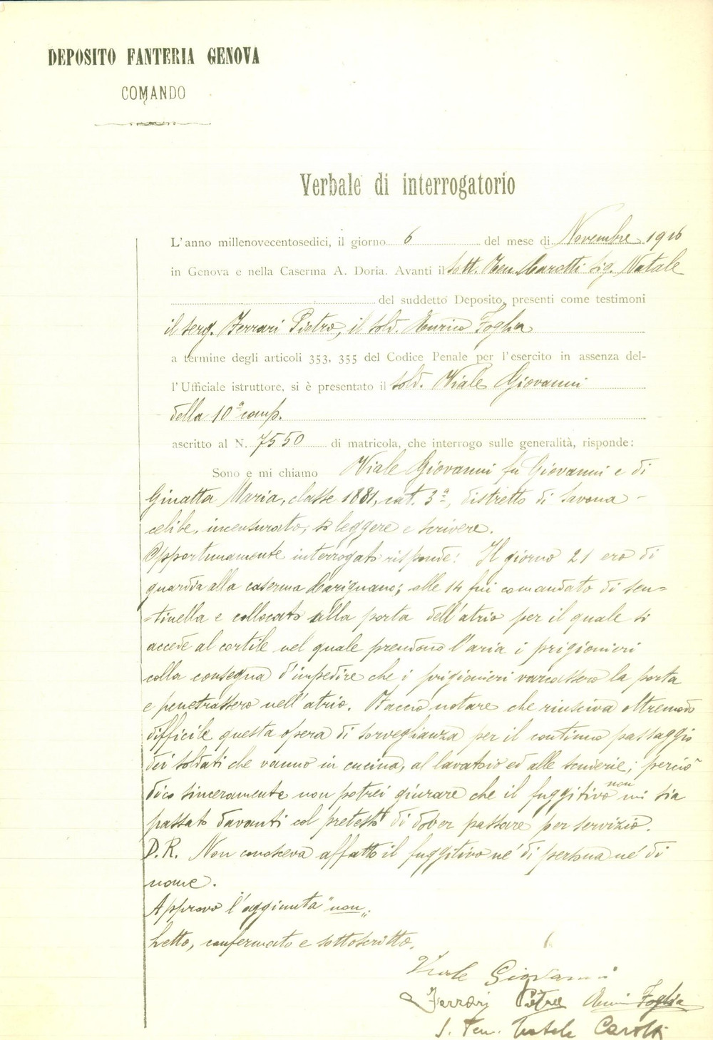 DATA: 6 novembre 1916 - WW1 LUOGO: GENOVA - CASERMA DORIA