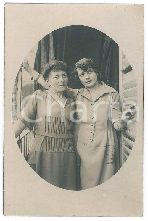 1920 ca ITALIA Ritratto di madre e figlia in balcone - Fotografia anonima 9x14