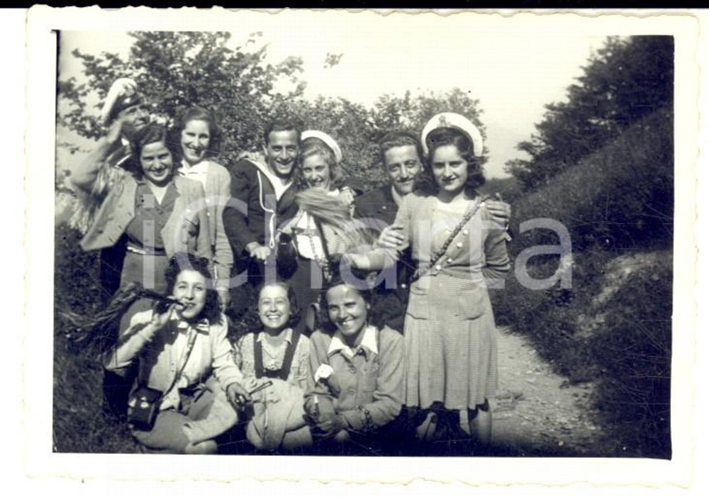 1935 ca ITALIA REGIA MARINA Cadetti in festa con giovani donne *Foto goliardica