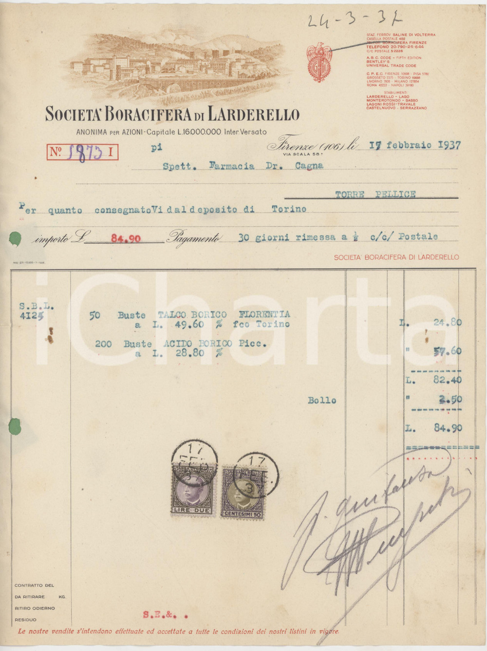 1937 FIRENZE Via Scala 58 Società Boracifera di Larderello - Fattura commerciale