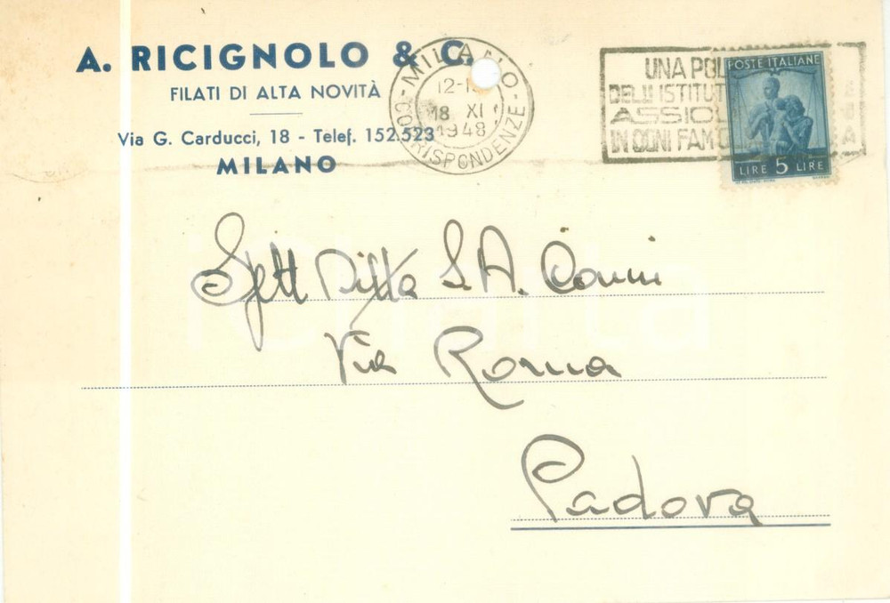 1948 MILANO Filati di alta novità RICIGNOLO & C. *Avviso di passaggio FG VG