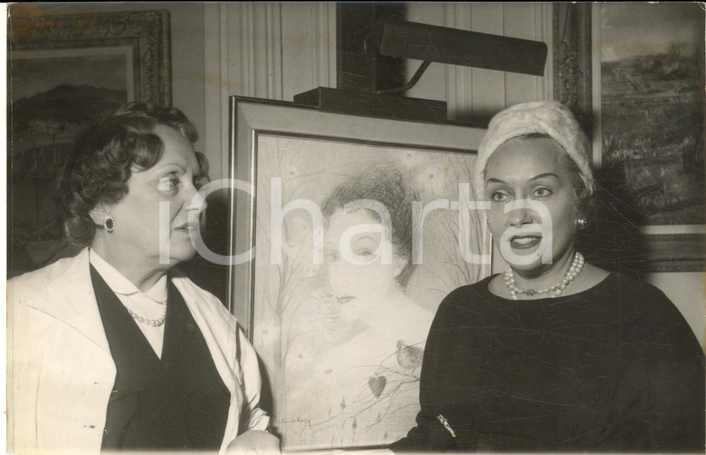1956 PARIS Gloria SWANSON riceve il suo ritratto da Marie Madeleine DE RASKY