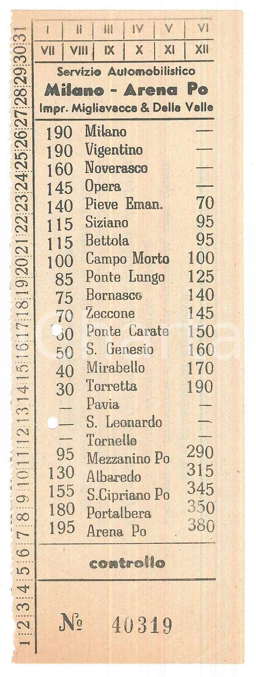 1960 ca MIGLIAVACCA E DELLA VALLE Servizio automobilistico MILANO - ARENA PO 1