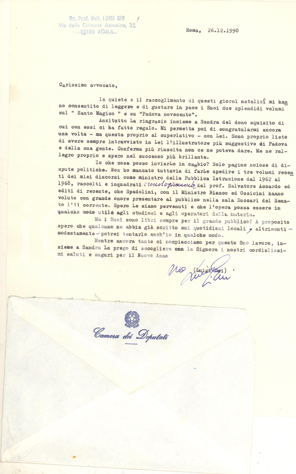1990 ROMA Lettera Luigi GUI - Ringraziamento per libri ricevuti - Autografo